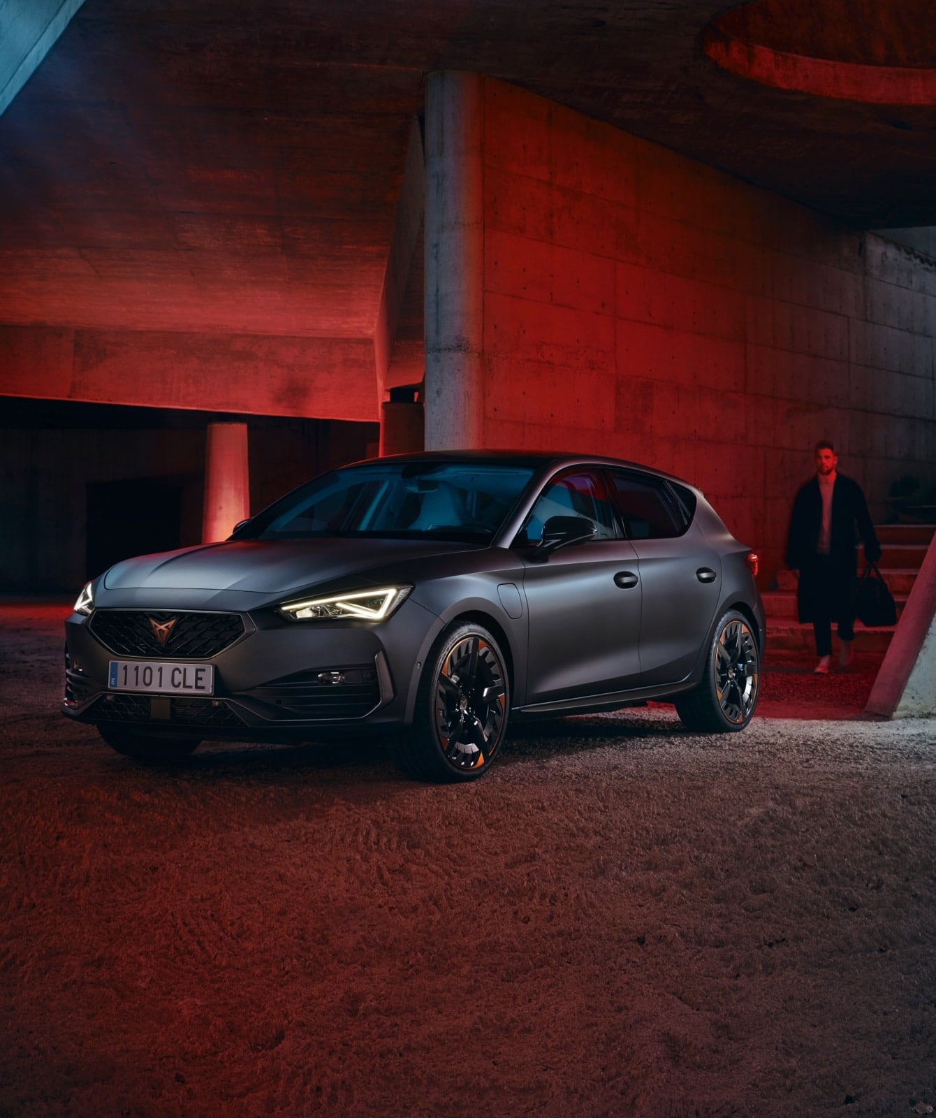 new CUPRA Leon ehybrid five door available in graphene grey colour new CUPRA Leon ehybrid five door compact sports car available in desire red colour